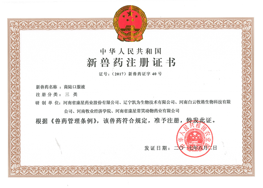 企業(yè)在發(fā)展過(guò)程中,十分重視知識(shí)產(chǎn)權(quán)和科研成果的保護(hù)工作,目前公司共有4項(xiàng)發(fā)明專(zhuān)利,1項(xiàng)國(guó)家三類(lèi)新獸藥證書(shū)。為表彰我公司在科研工作中做出的突出貢獻(xiàn),錦州市科技局認(rèn)定我公司為2015年錦州市科技創(chuàng)新型中小企業(yè)。